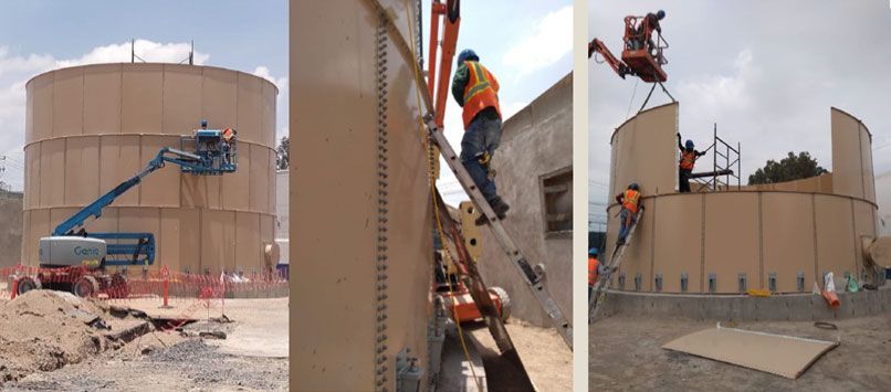 Instalación de 2 tanques atornillables para almacenamiento de agua de 750,000 litros.